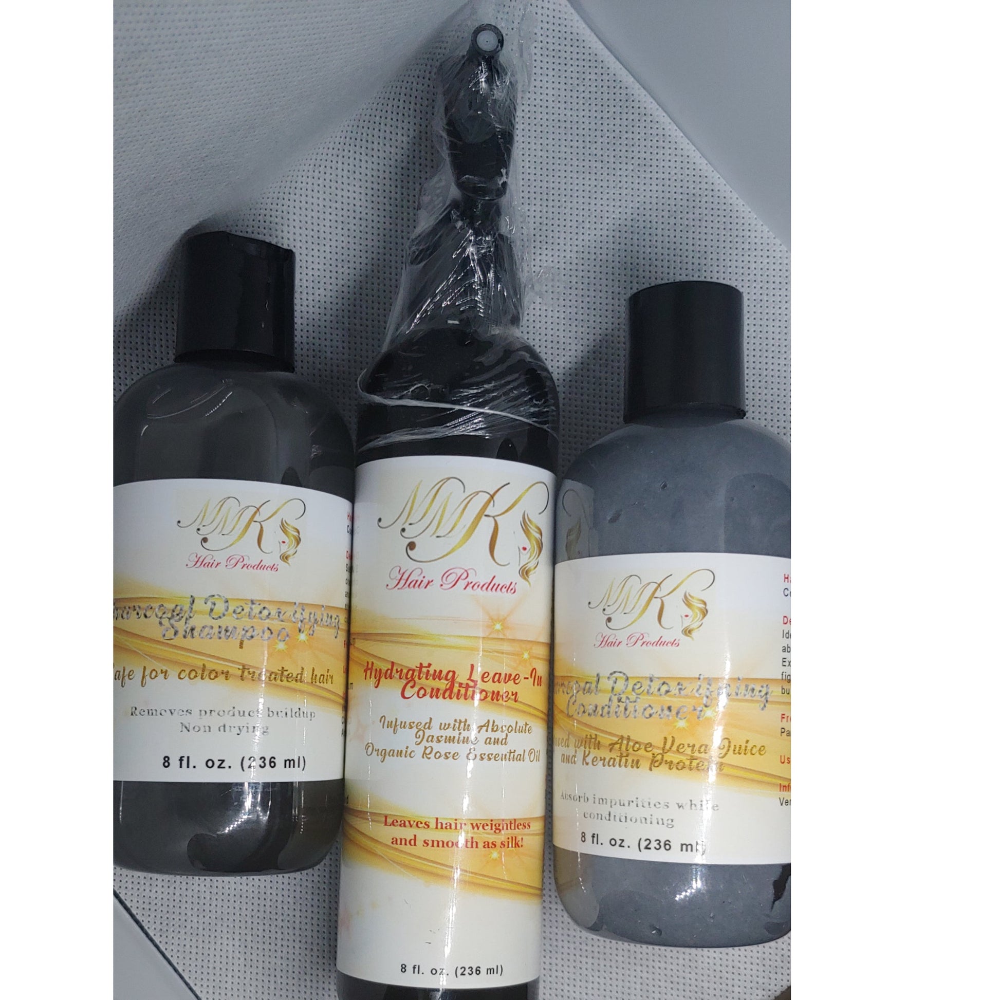 (Package II) Charcoal Detoxifying Shampoo & Charcoal Detoxifying Conditioner with Hydrating Leave In Conditioner Kit